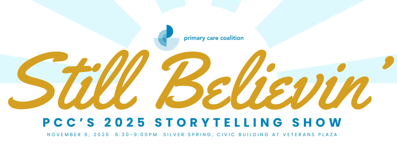 | |  | The Primary Care Coalition’s 2025 Storytelling Show is almost here! Join us on Thursday, November 6, from 6:30 to 9:00 p.m. at the Silver Spring Civic Building (One Veterans Plaza, Silver Spring, MD 20910). This beloved annual event is more than just an evening together—it’s a celebration of community through stories that inspire, move, and entertain. Expect laughter, heartfelt moments, and narratives that will stay with you long after the night ends. Tickets are now available! Click here to purchase yours today. Mark your calendar—you won’t want to miss this unforgettable evening. We can’t wait to see you there! |